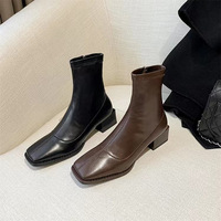 Wholesale Fashion Casual Brown Boots Square Toe Brown Mid Heel Boots for Women